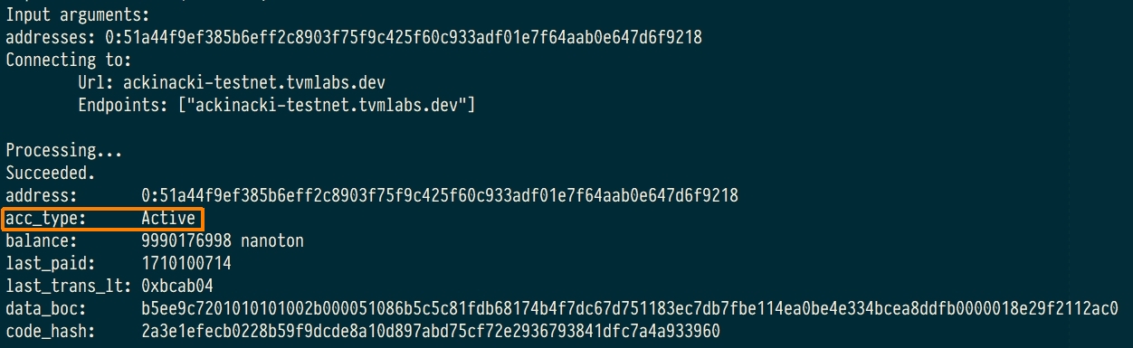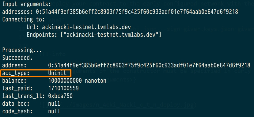 4) Check the state of the pre-deployed contract. It should be Uninit:
