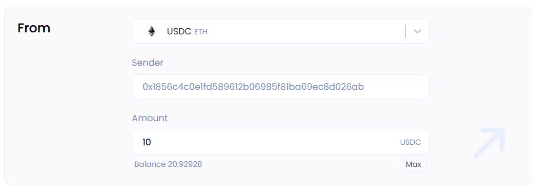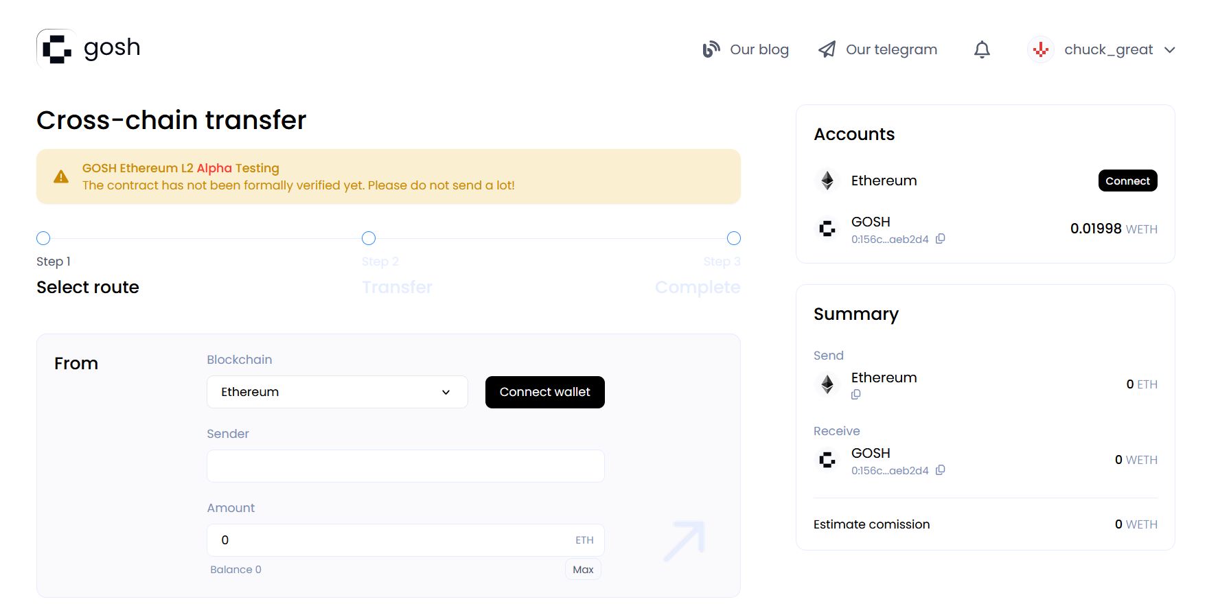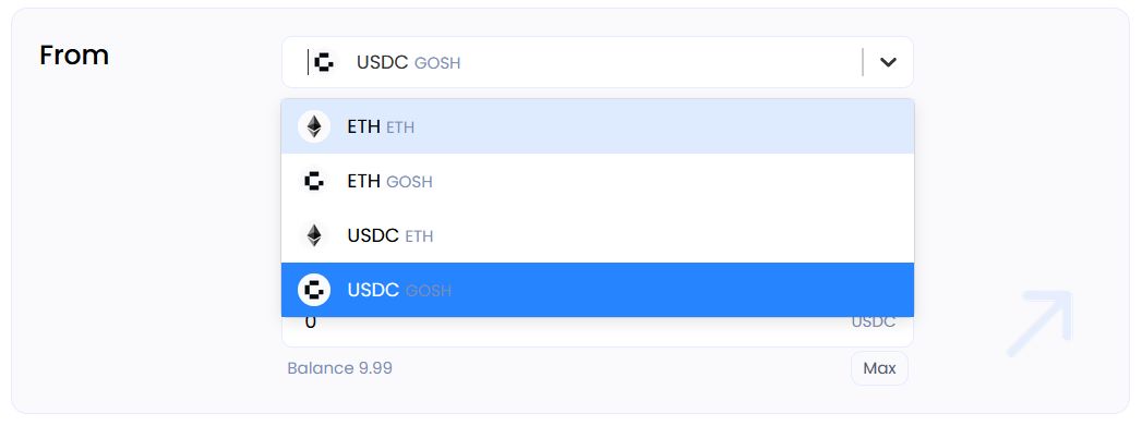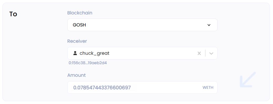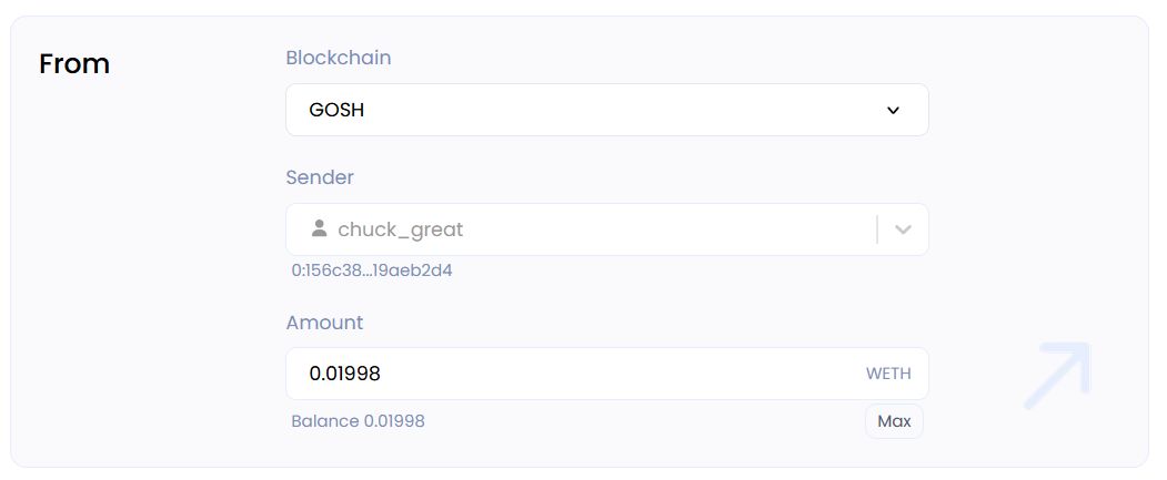 In the From section, select the GOSH blockchain and enter the sender's wallet address or GOSH username along with the amount of WETH tokens you wish to withdraw:
