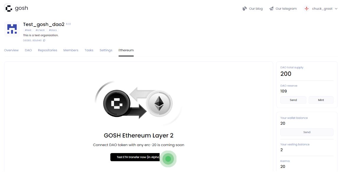 Any DAO on GOSH can become Ethereum Layer 2 with a click of a button.