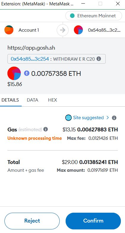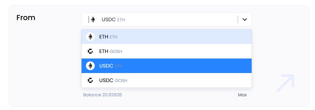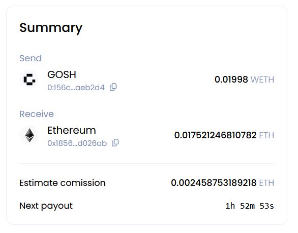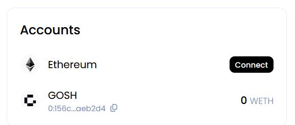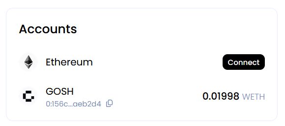 After depositing the GOSH contract on Ethereum, you will receive the corresponding amount of WETH tokens (Wrapper Ethereum tokens) in your GOSH network wallet.