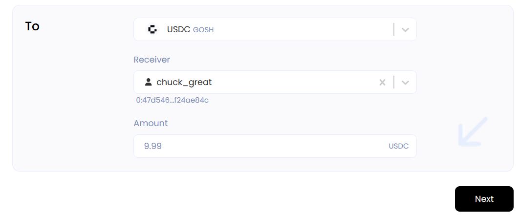 Enter the wallet address or GOSH username of the recipient for the transfer.