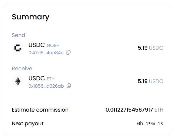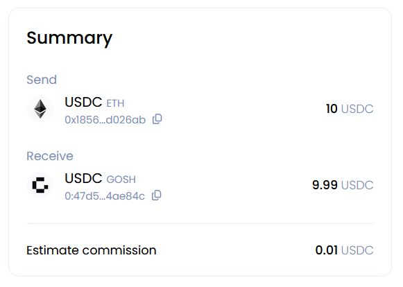 The Amount field will indicate the transferred amount (minus the commission) that will be credited to the recipient's wallet in GOSH.