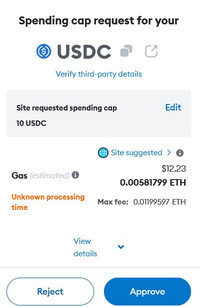 In the opened MetaMask window, confirm the necessary parameters for the transfer.