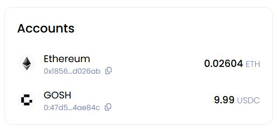 In the future, the balances of your wallets on GOSH and Ethereum will be displayed here