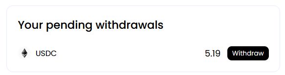 After the transfer process, you will be able to view the list of your assets that have been transferred from GOSH to Ethereum in the Your pending withdrawals section.