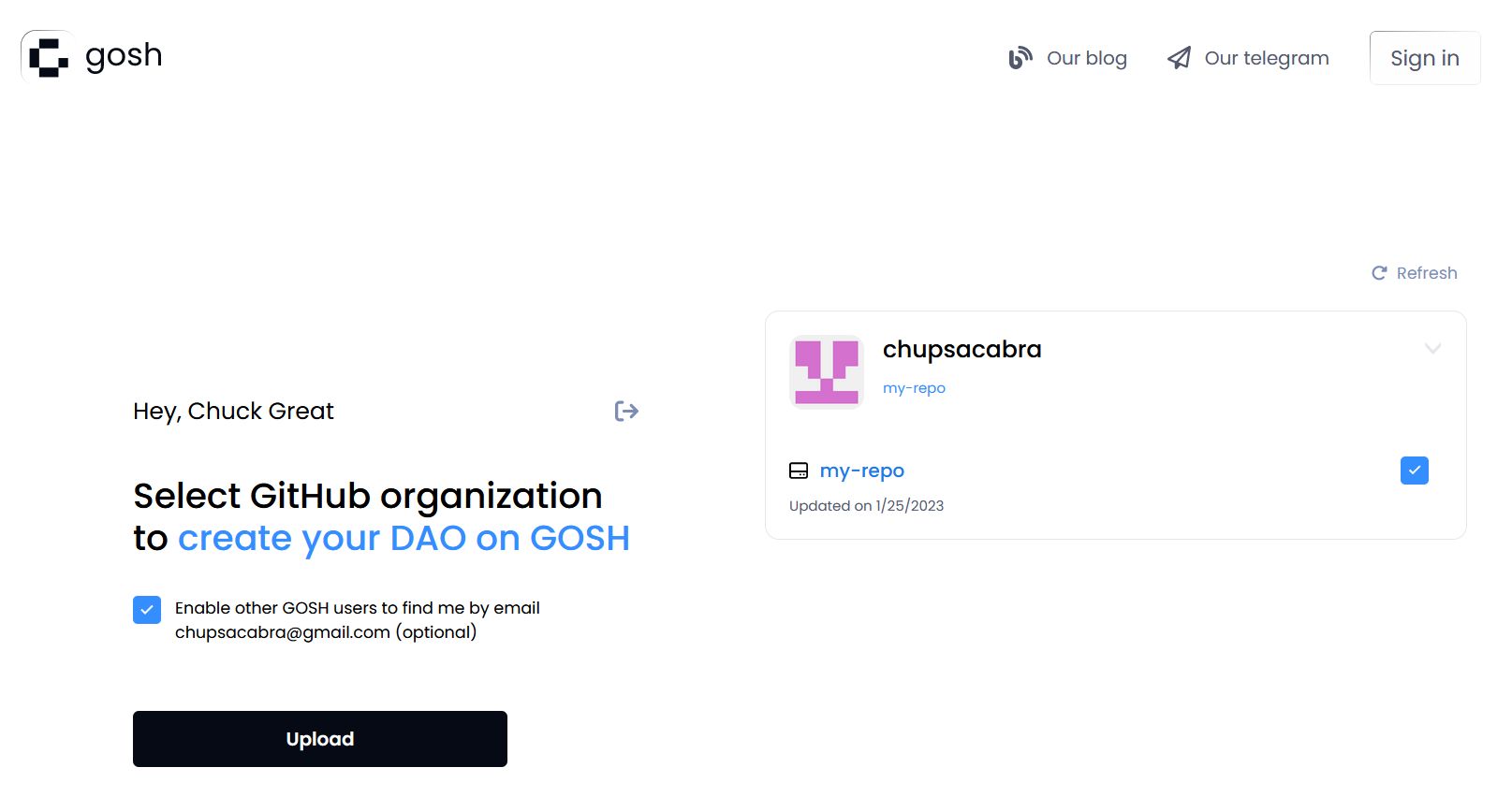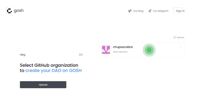 and select repositories for upload into GOSH