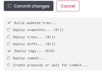 If the branch you are working on does not require a vote to commit changes, they will be committed immediately. Otherwise, a DAO vote will be initiated.