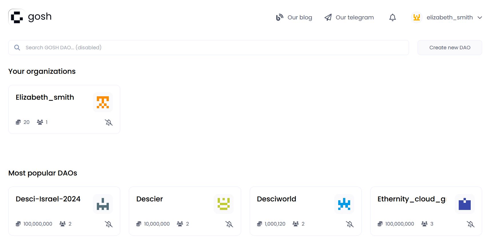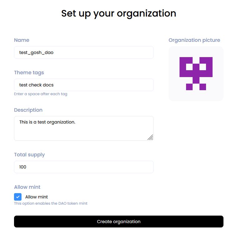 You can add up to 3 tags separated by spaces. According to them, GOSH users will be able to find your DAO.