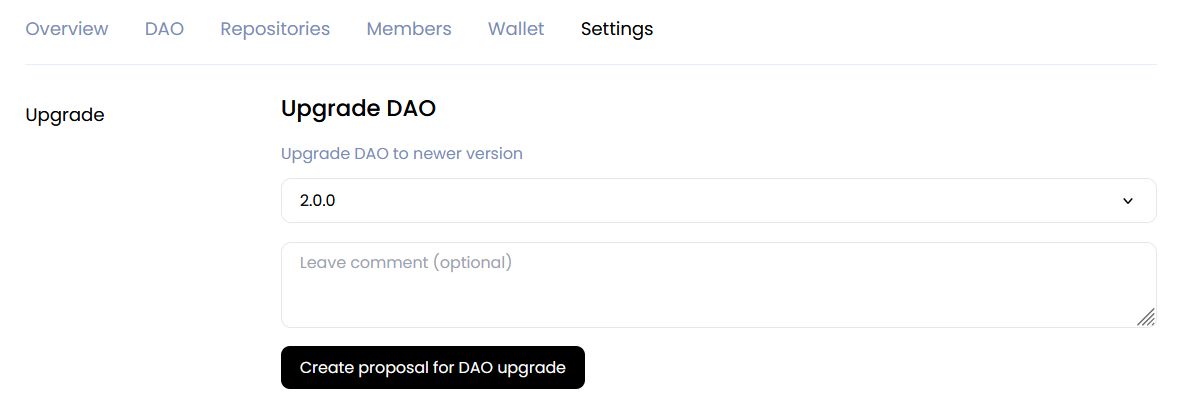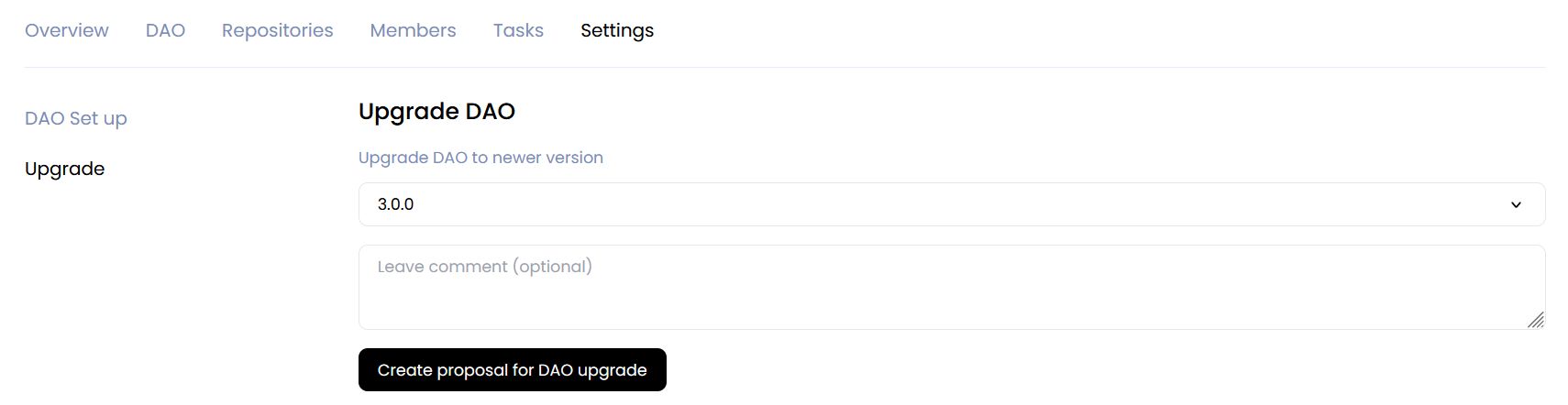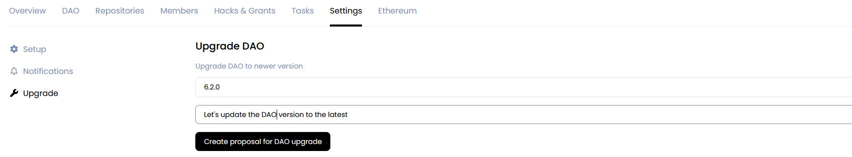 Select the version you want to upgrade and click Create proposal for DAO upgrade: