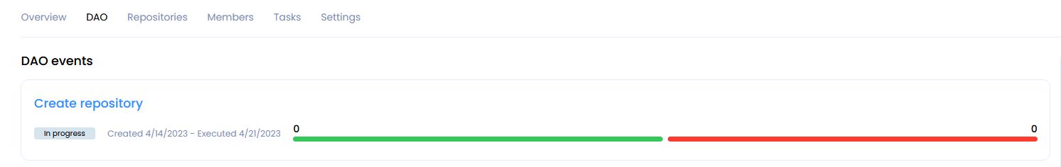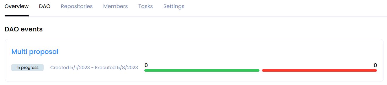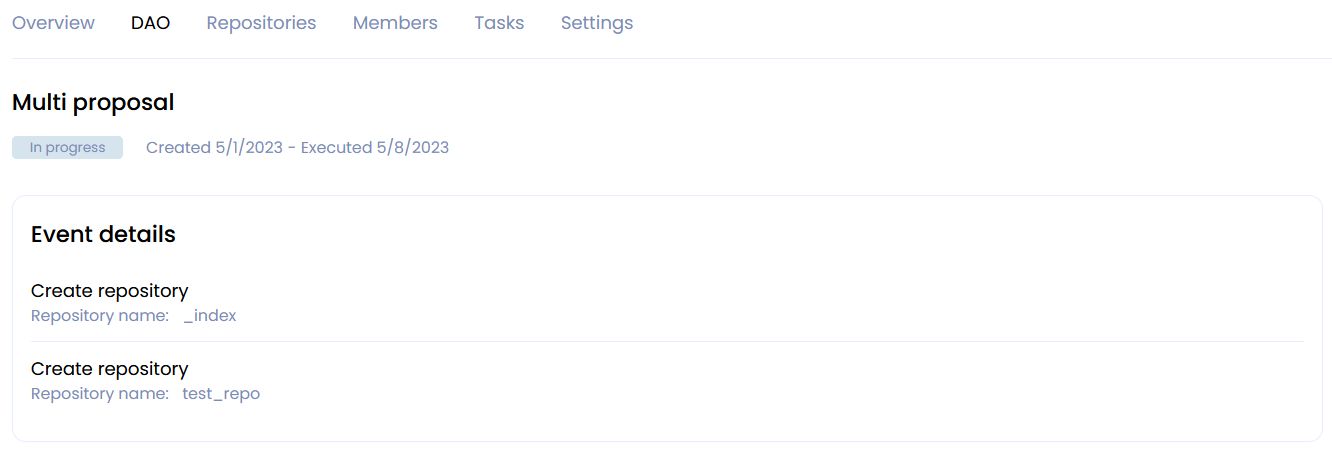 * DAO can create proposals and vote for proposals in parent DAO (not implemented yet)