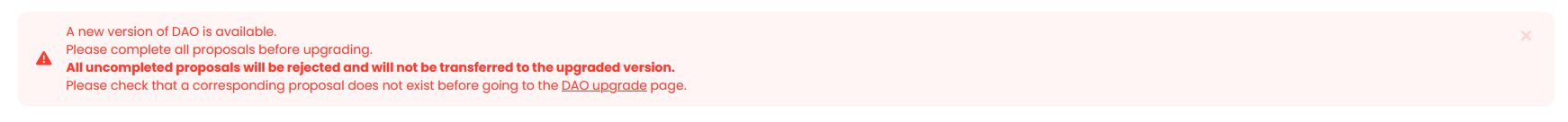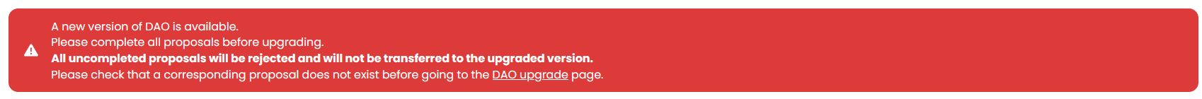 You can see a message about the availability of a new version and an invitation to update in the DAO.