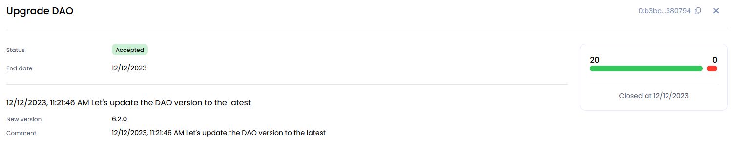 After accepting the proposal, the procedure for updating your DAO will begin.