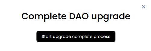 Then, a new window will open up, and you'll need to click on "Start upgrade complete process" to begin the data migration process between versions of DAOs.