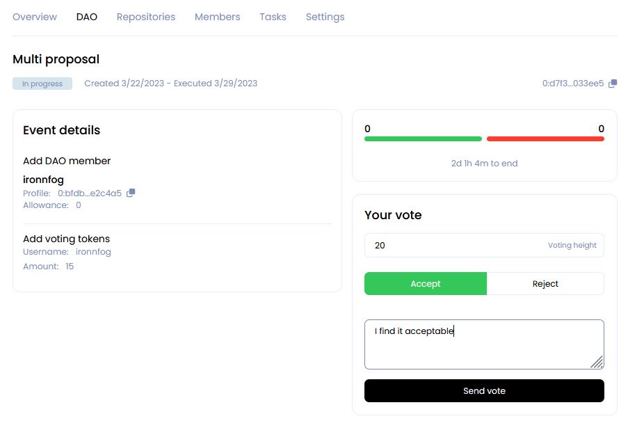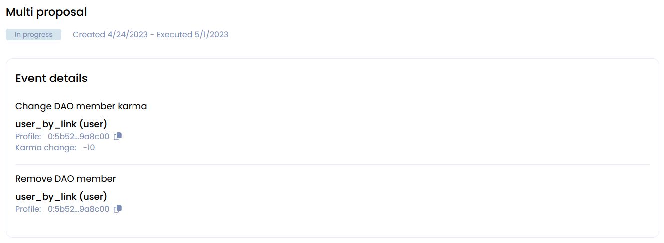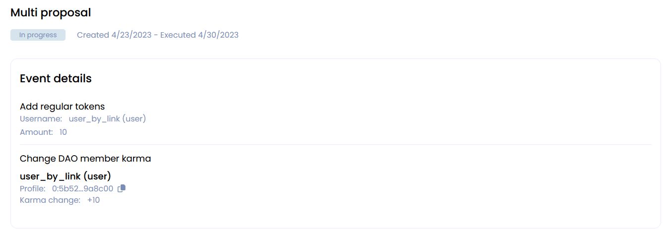 As a result, a Multi proposal will be created, and you will be redirected to the DAO events.