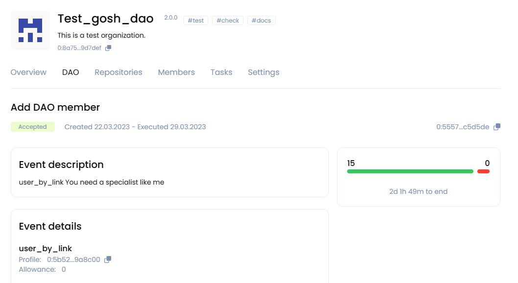 On the event page that opens, you can find a request for your acceptance as a member of the DAO.