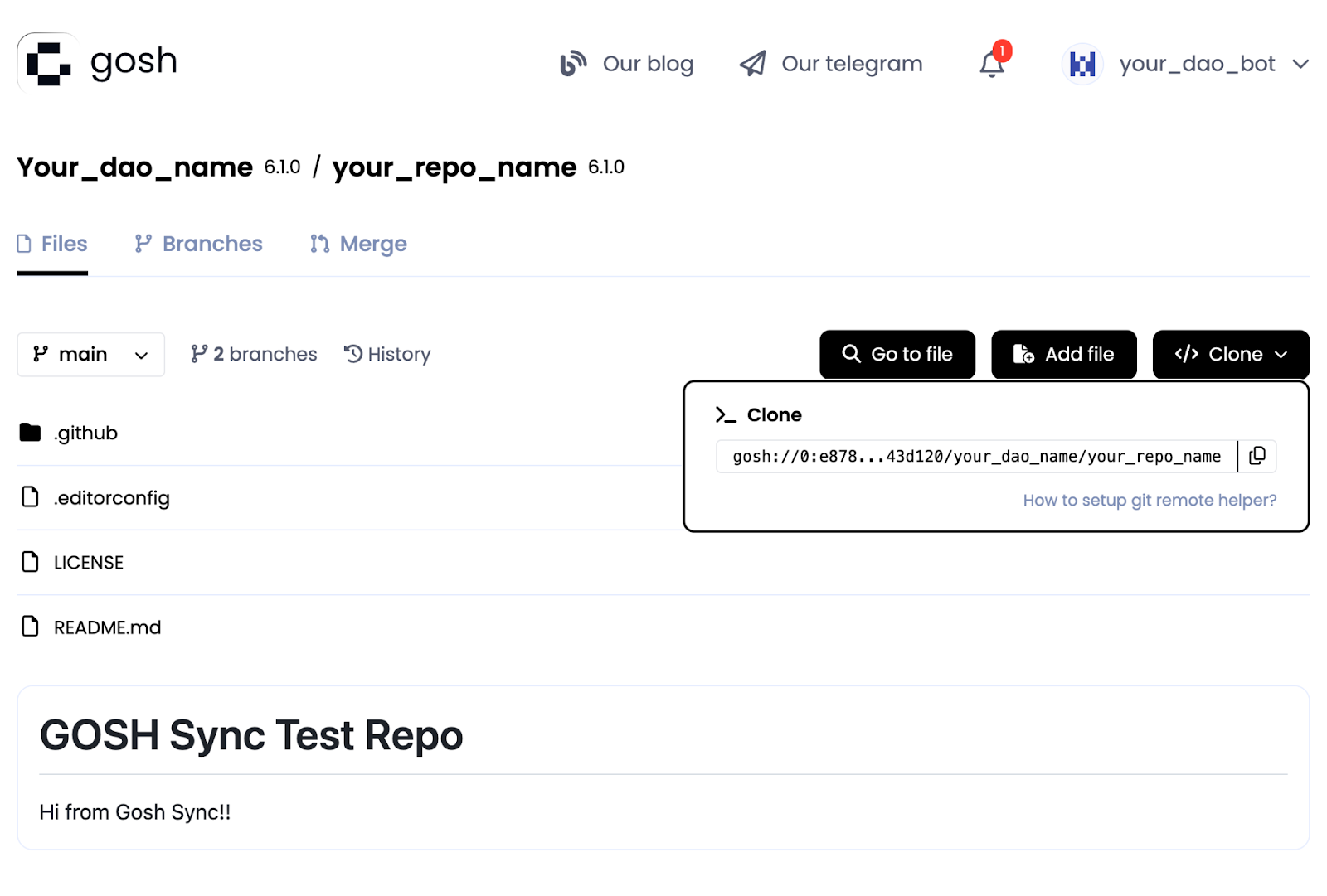 GOSH GitHub Sync is an easy way to enable GOSH DAOs to work side by side with GitHub Repositories.